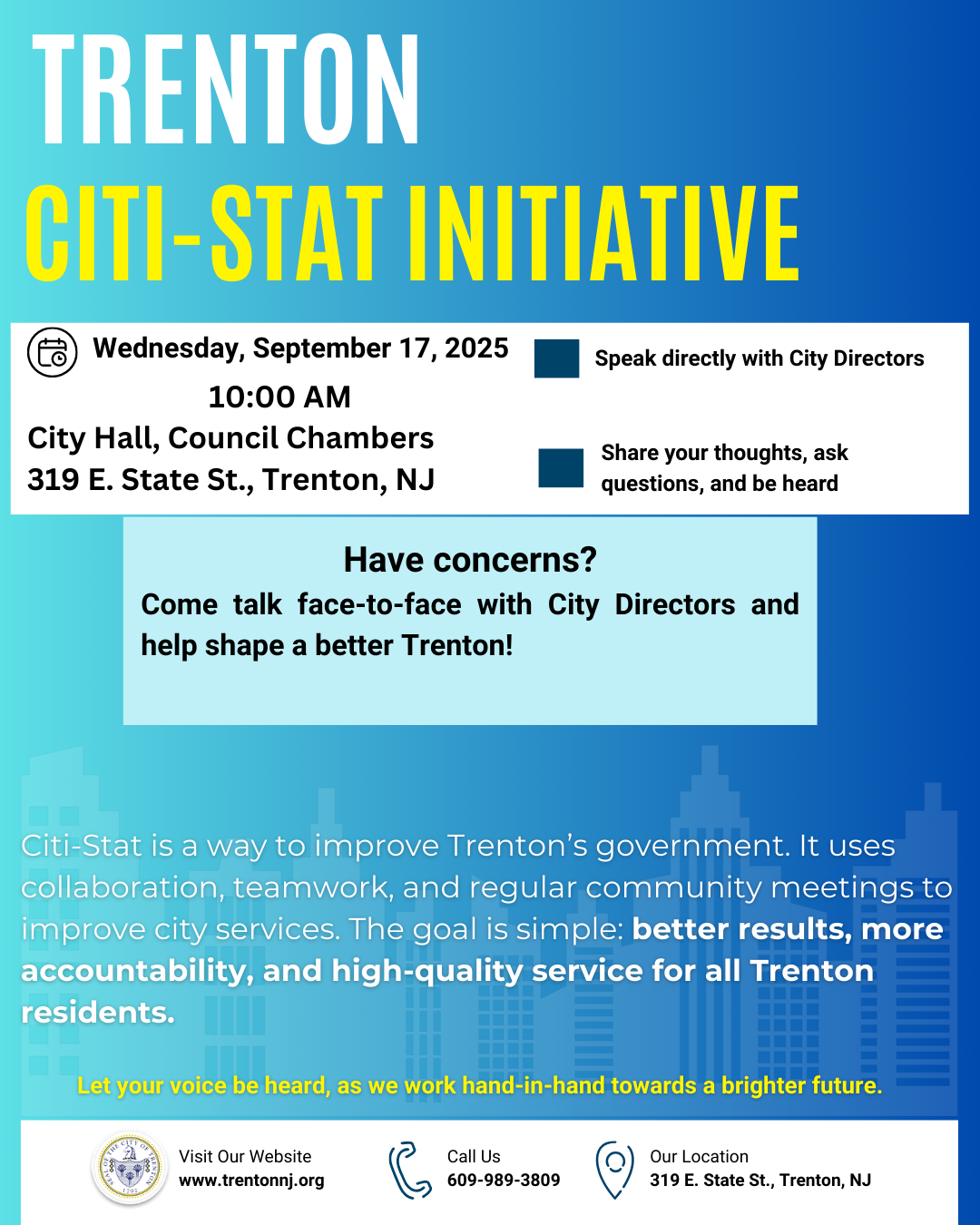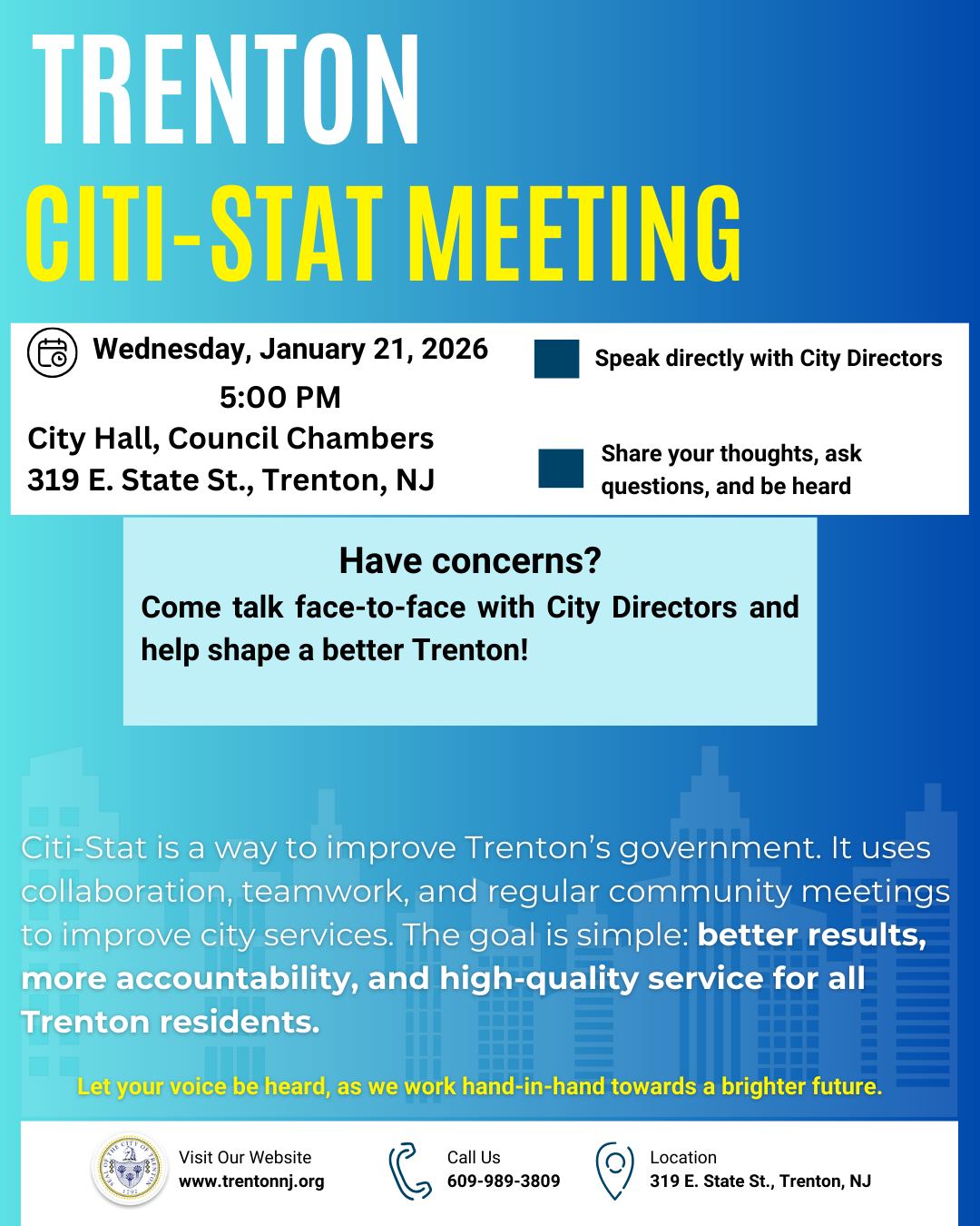 On behalf of Sean Semple, Director of the City of Trenton’s Department of Water and Sewer, and Taya Brown-Humphrey, Water Treatment Plant Superintendent, I am providing an update on the status of the Trenton Water Works (TWW) system and the Pennington Avenue Reservoir.