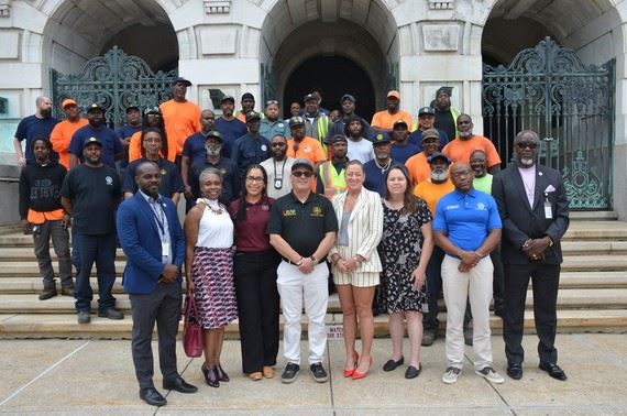 Trenton, N.J. - Mayor Reed Gusciora joined by Vice President and South Ward Councilwoman Jenna Figueroa Kettenburg, West Ward Councilwoman Teska Frisby, North Ward Councilwoman Jennifer Williams, Recreation Director Paul Harris, Assistant Public Works Director Hector Weah, and members of the public works and recreation teams announced the results of the City Wide Clean Up Initiative.
