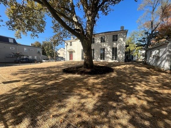 At Sonny Vereen Playground, work commenced on September 30 with soil cover installation, which was completed by the week of October 7. The topsoil areas were hydroseeded, and straw matting was installed to stabilize the soil. The grass at Sonny Vereen began sprouting around October 17, however the park remains closed until the new grass is fully established. Watering will continue as necessary over the next several weeks to support the growth of the grass.